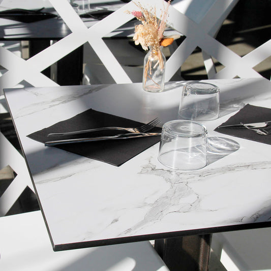 Laissez parler votre créativité ! Chez RestooTab, vous pouvez composer la table de vos rêves en jouant sur les décors de plateaux, les formes, les dimensions, les couleurs de piétements...