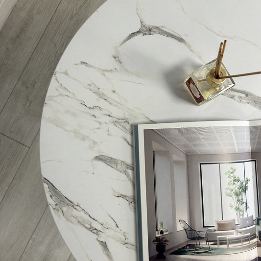 Tablero de mesa Mármol Blanco cantos latón Ø70cm